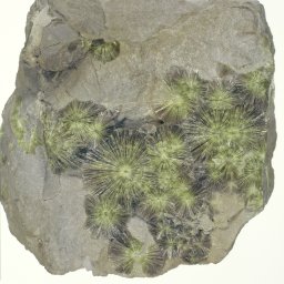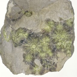 | Description | Green to pale green radiating aggregate | ||||||||||||