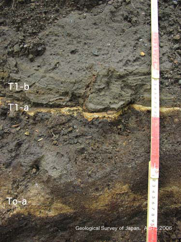 ![]() 図3.T1-a,b 火山灰の分布 (伊藤,1999c)より引用