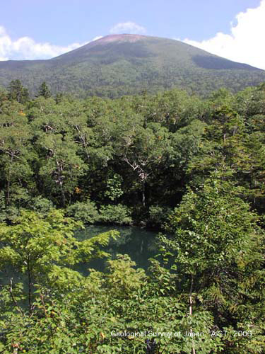 | 西岩手カルデラ内で発生したマグマ噴火により中央火口丘群が形成された.噴火の中心は主に現在の御苗代湖付近であったが,初期には大地獄谷周辺で噴火活動が起こり小規模な山体を形成したと思われるが,強度の変質作用を被ったためその詳細は明らかではない.御苗代湖を中心とする噴火活動では,比較的規模の大きな火口を形成するような爆発的な噴火活動を挟み,焼切沢溶岩,御苗代溶岩,御釜溶岩が噴出した.焼切沢溶岩は地形的に少なくとも2枚の溶岩ローブから構成され,焼切沢に沿って西岩手外輪山西部に開いた火口瀬からカルデラ外に流れ出している.御苗代溶岩は少量の部分的に溶結した降下火砕物を伴う厚い溶岩流(あるいは溶岩ドーム)で,御苗代湖を取り巻くように分布し,その中心部には直径500mの御苗代第1火口が開いている.御釜溶岩はその火口内に噴出した小規模の溶岩ドームで,その頂部には直径約200mの御苗代第2火口と,それに隣接して直径80mの御釜火口が開いている.金沢火砕流堆積物は,北西山麓に断片的に分布する小規模な火砕流堆積物で,噴出年代は約3万年前と考えられる. |